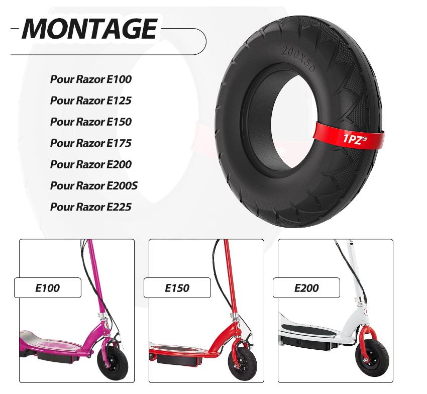 Плътна бандажна гума 1PZ 200X50 за електрически скутери Razor E100, E125, E150, E175, E200, E200S, E225