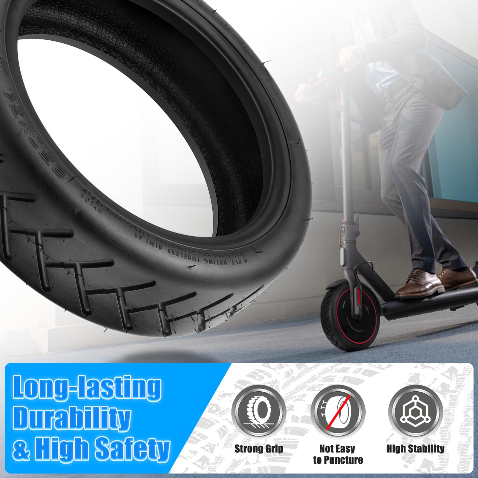 Безкамерна TUOVT гума 10×3.0 (255X80) за KuKirin G2 Max / G3 Pro / M4 / M4 Pro, Vsett 10+, Zero 10X