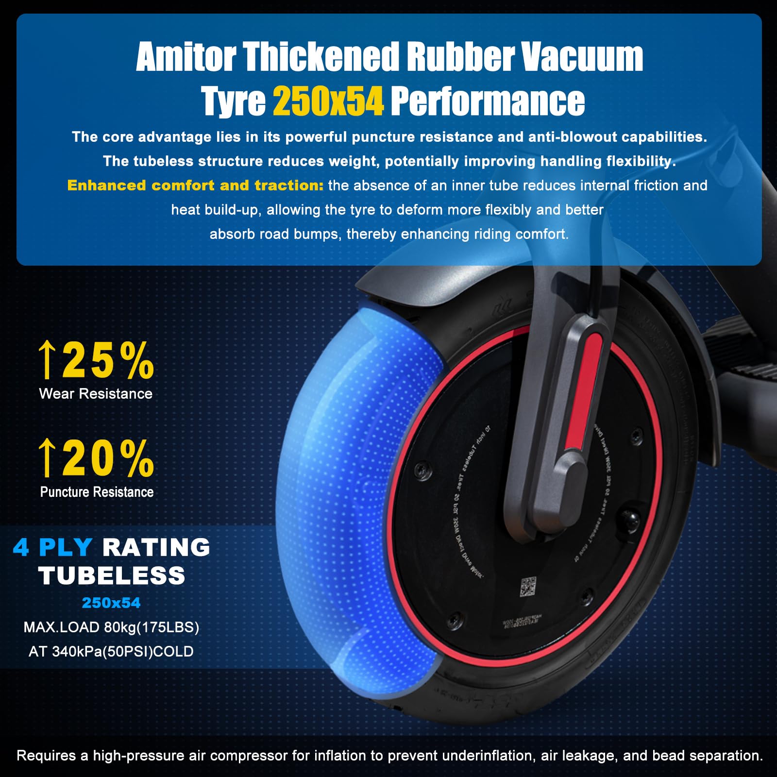 Безкамерна гума 250×54 с прав вентил за Xiaomi 4