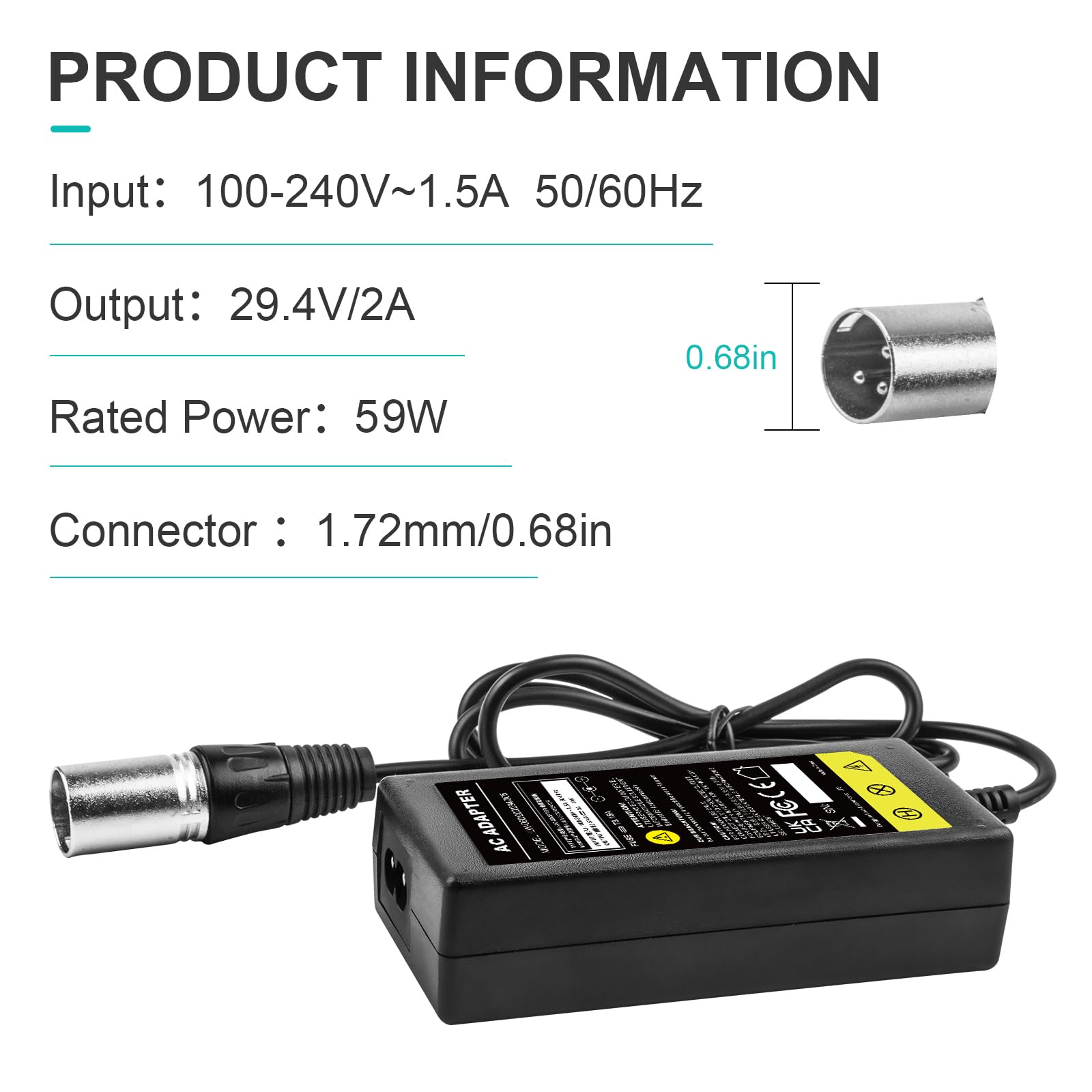 Зарядно устройство 29.4V 2A за електрически превозни средства с 24V литиево-йонни батерии и XLR порт за зареждане