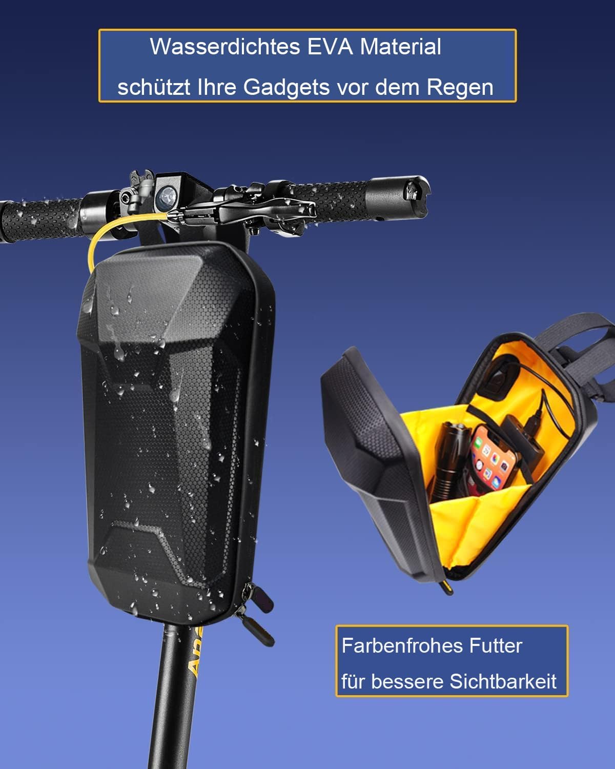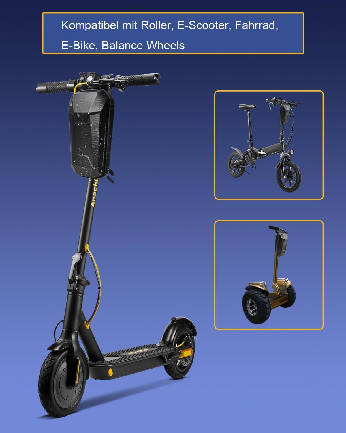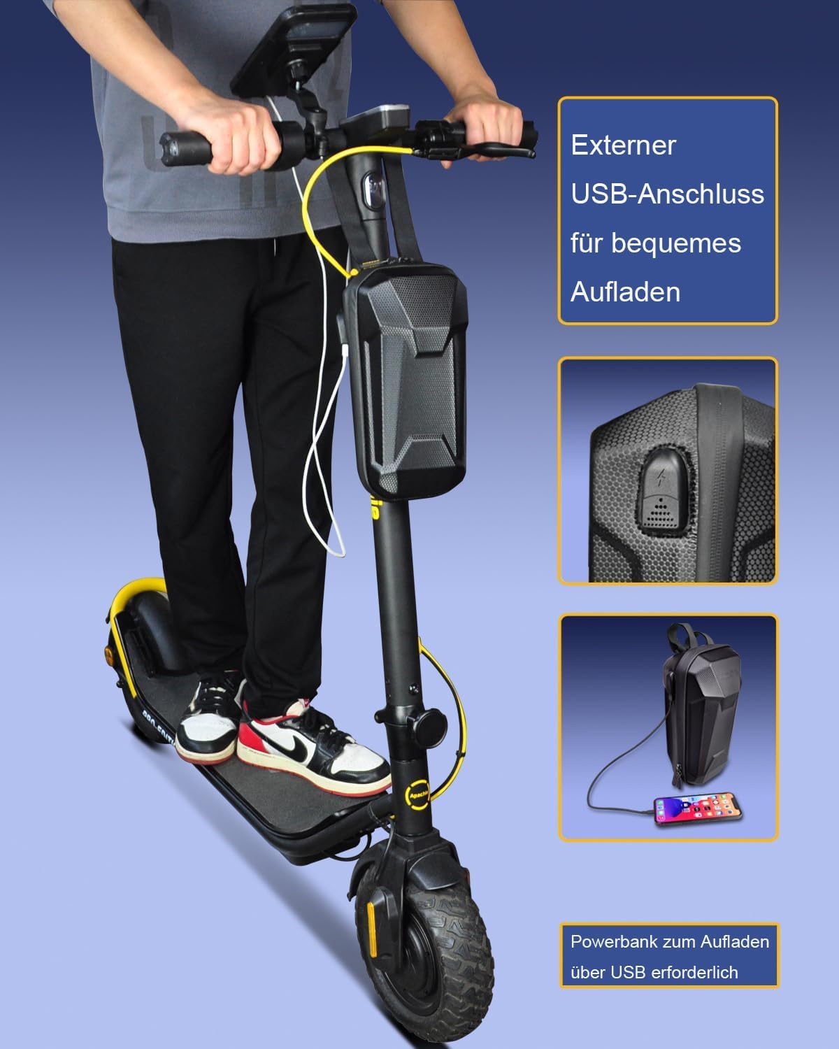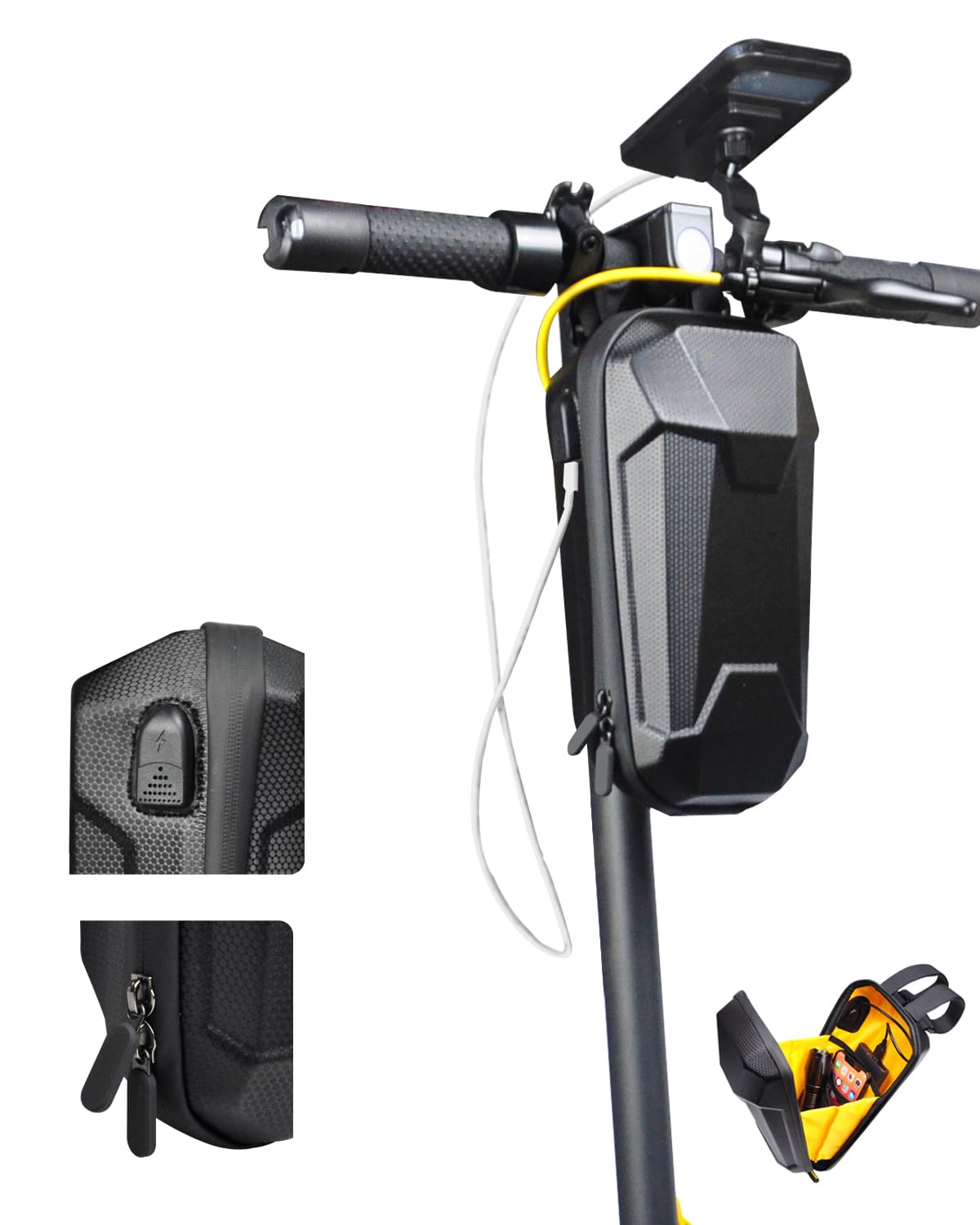 Чантиа за електрически тротинетки, велосипеди и скутери с USB порт за зареждане и твърда обвивка. Обема на чантата е 4 литра