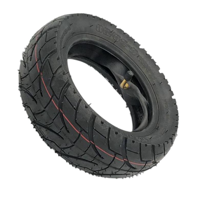 Комплект външна гума размер 80/65-6 – 10×3.0 / 255X80 и вътрешна гума с 90 градуса крив вентил заследните модели електрически скутери: