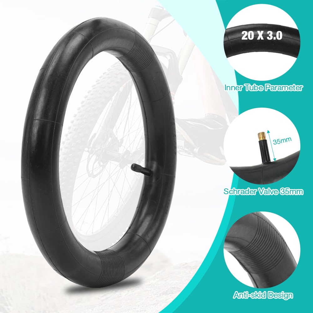 Чифт от две вътрешни гуми с размери 20х3.0 инча AV35mm подходящи за детски и електрически велосипеди. В комплекта е включена щанга за демонтаж.