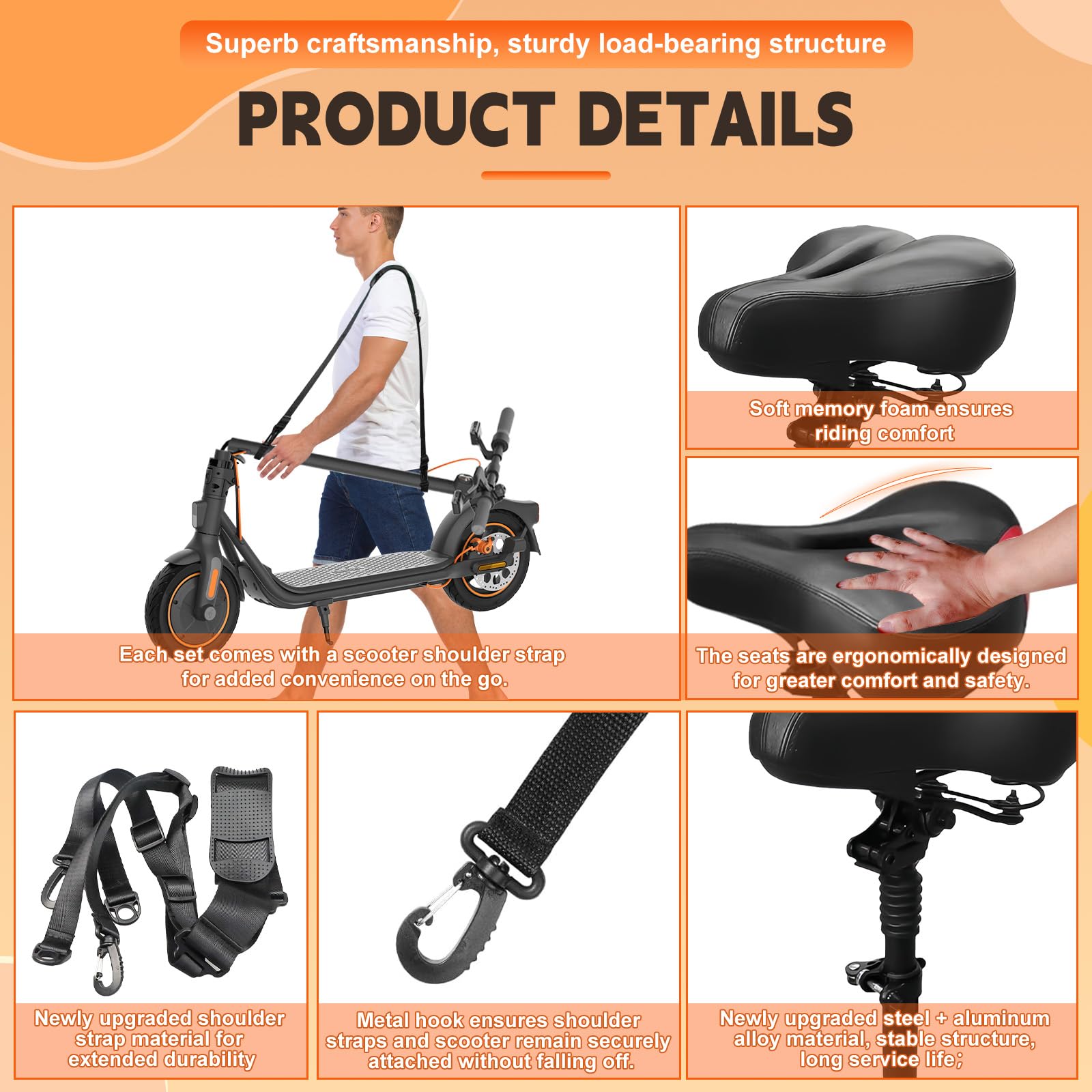 Седалка с регулируема височина от 53 до 66 сантиметра и товаропоносимост 120 кж, която е съвместима с електрически тротинетки Segway-Ninebot F20 / F25 / F30