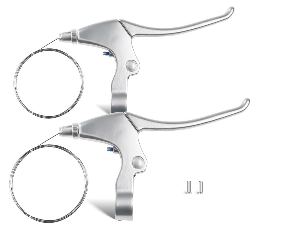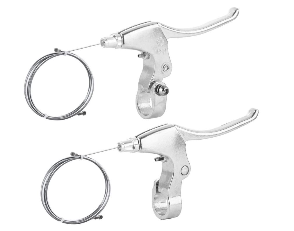 Сребристи спирачни лостове комплект – лява и дясна страна и спирачно жило за MTB велосипеди