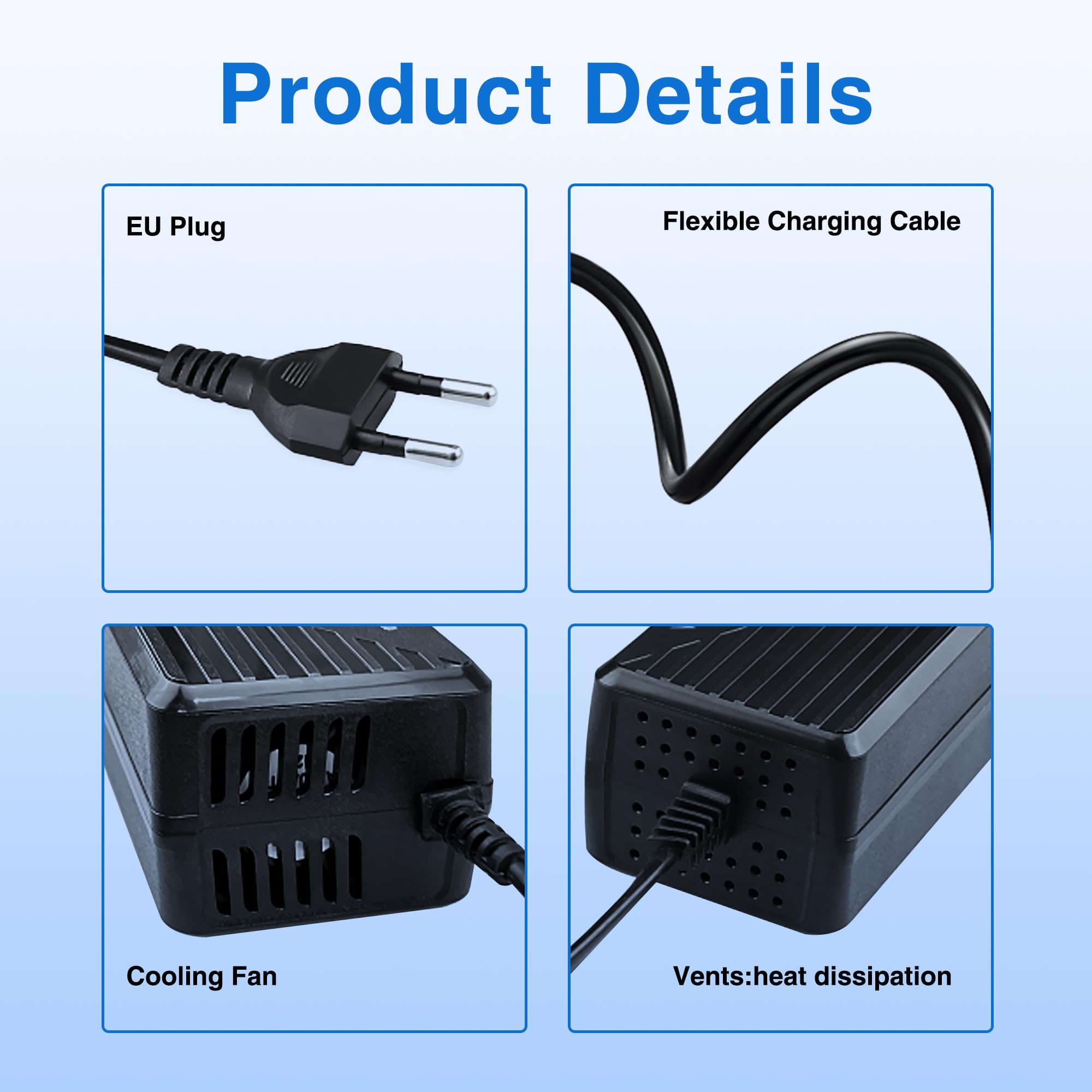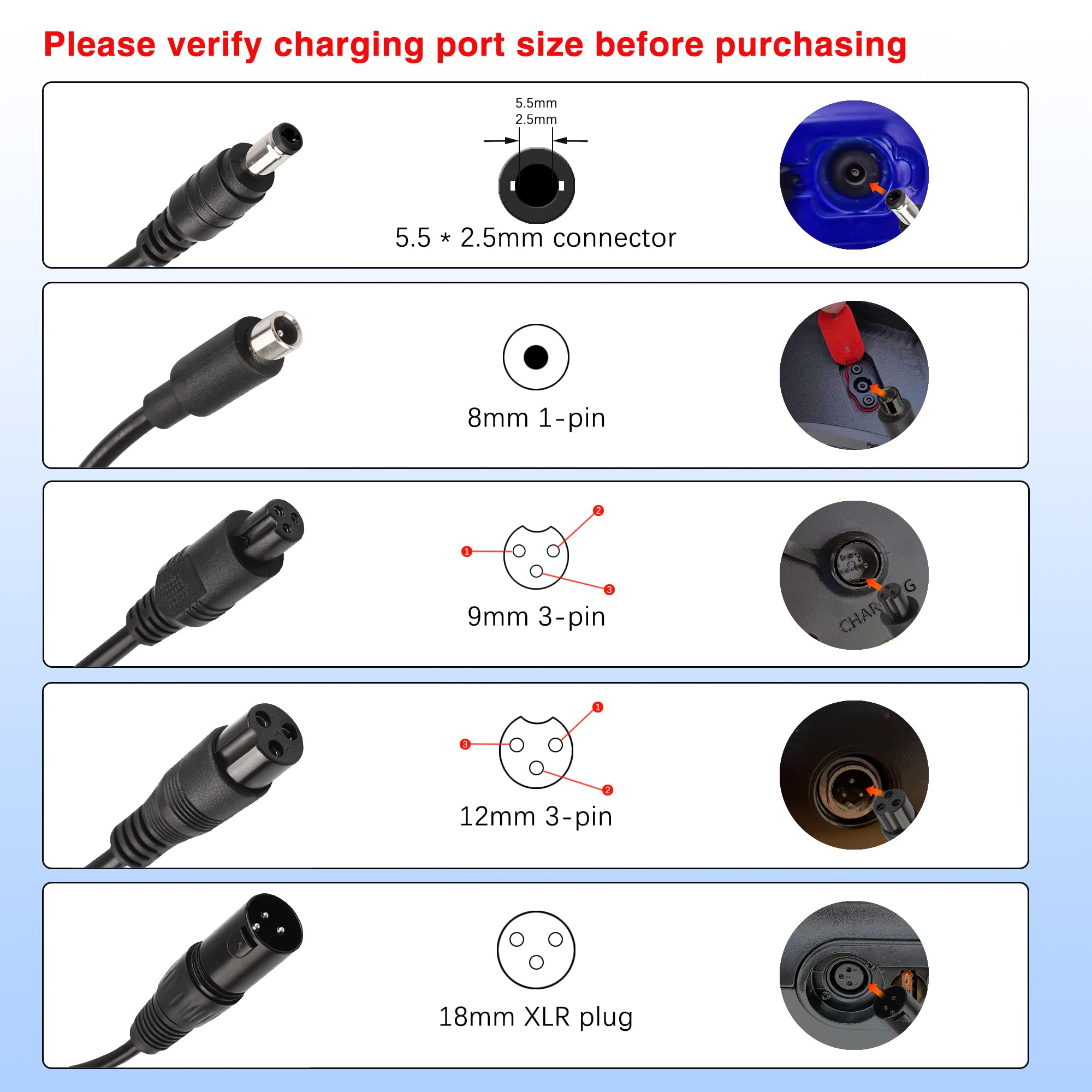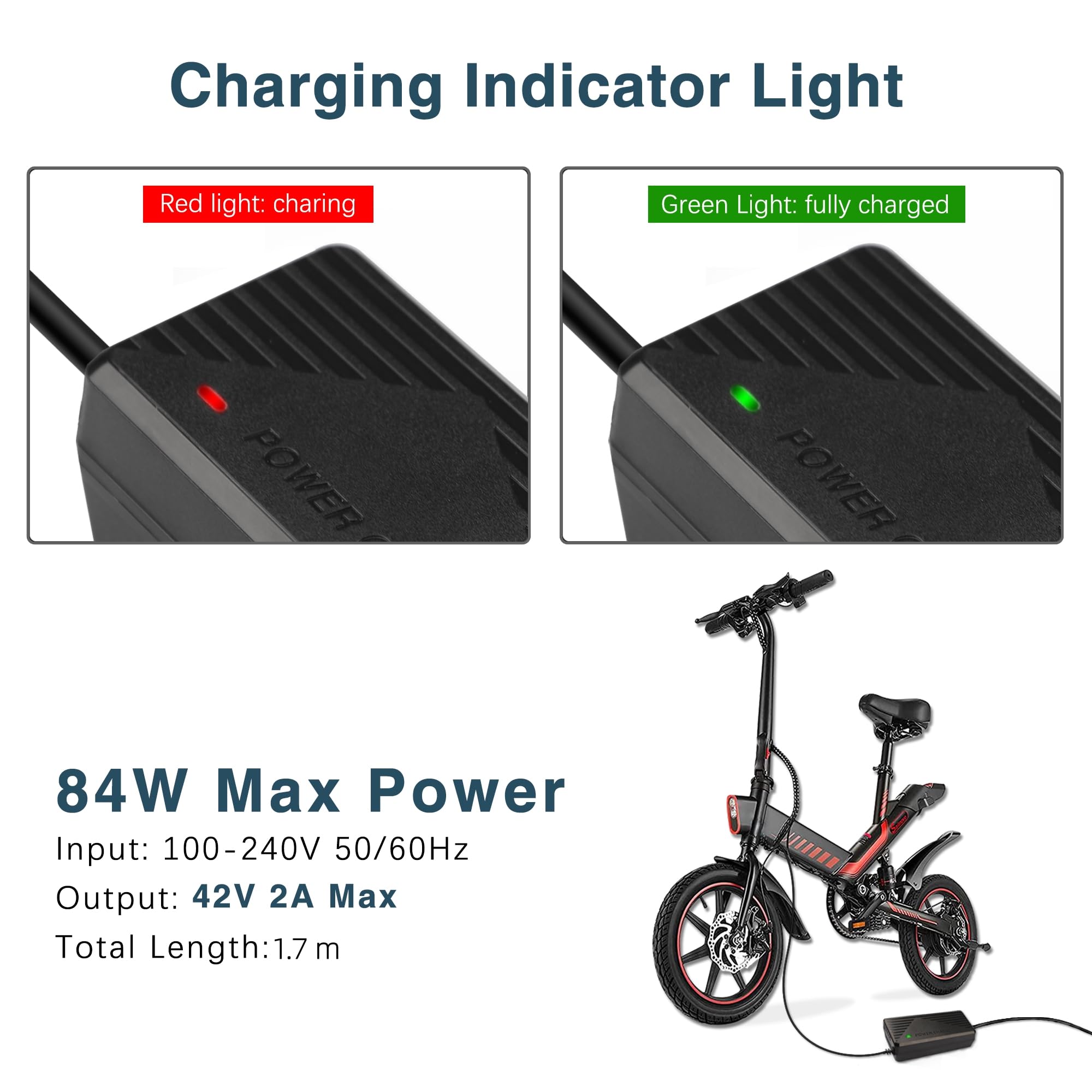 Зарядно устройство 42V 2A за 36V литиево-йонни батерии на електрически велосипеди, тротинетки, скутери и ховърборди с 5 порта: